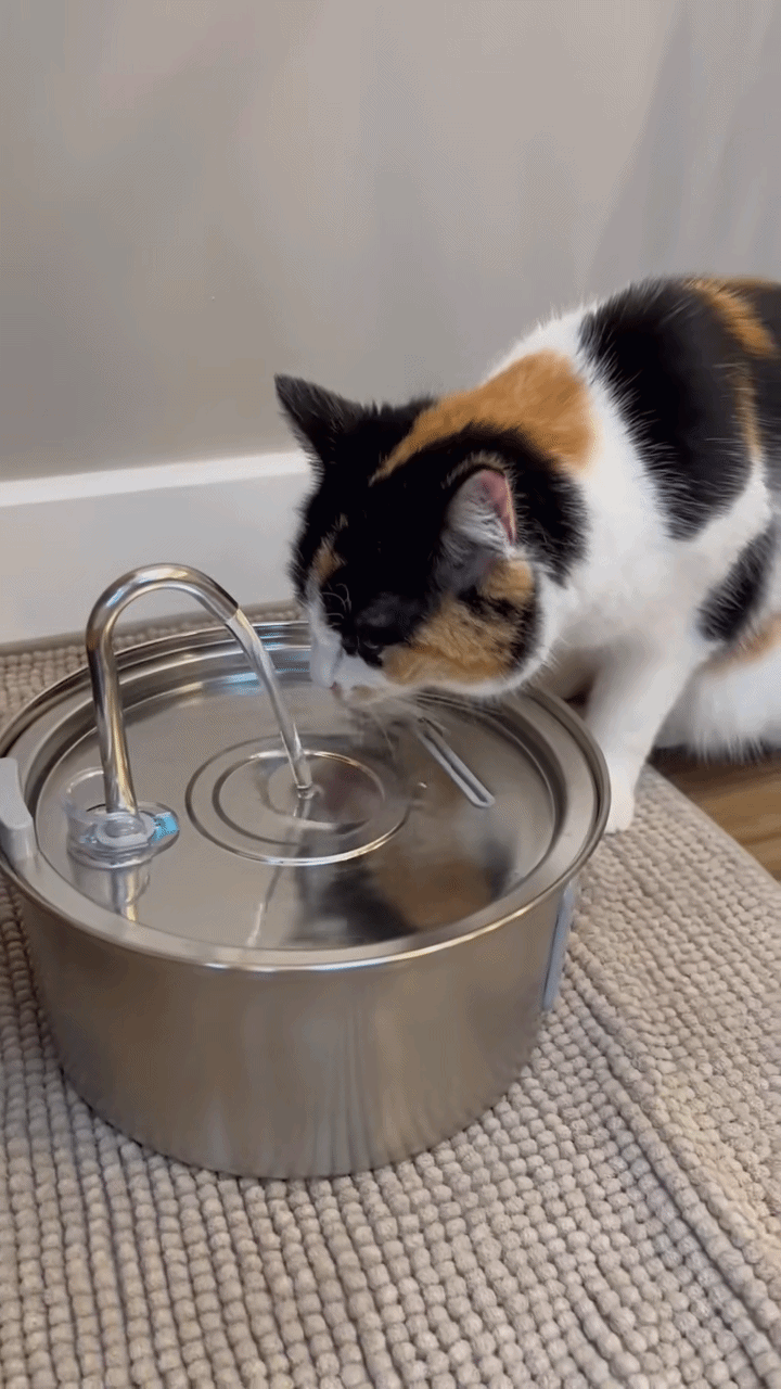 Vår fontene i rustfritt stål kombinerer et aktivt kullfilter med en ultra-stille pumpe for å gi katten din det friskeste vannet mulig. Den fjerner hår og urenheter kontinuerlig, mens det smarte vannvinduet gir deg full kontroll på nivået.